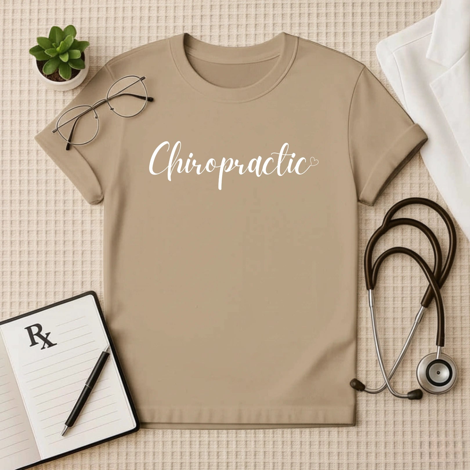 Show your passion for spinal health with our elegant "Chiropractic" Doctor T-shirt. Featuring a graceful script font and a subtle heart detail, this design embodies the care and precision of chiropractic medicine. More than just a medical T-shirt, it's a stylish representation of your dedication to holistic well-being and the art of spinal alignment. Comfortable and sophisticated, this tee is perfect for chiropractors, students, and anyone who appreciates the power of natural healing.