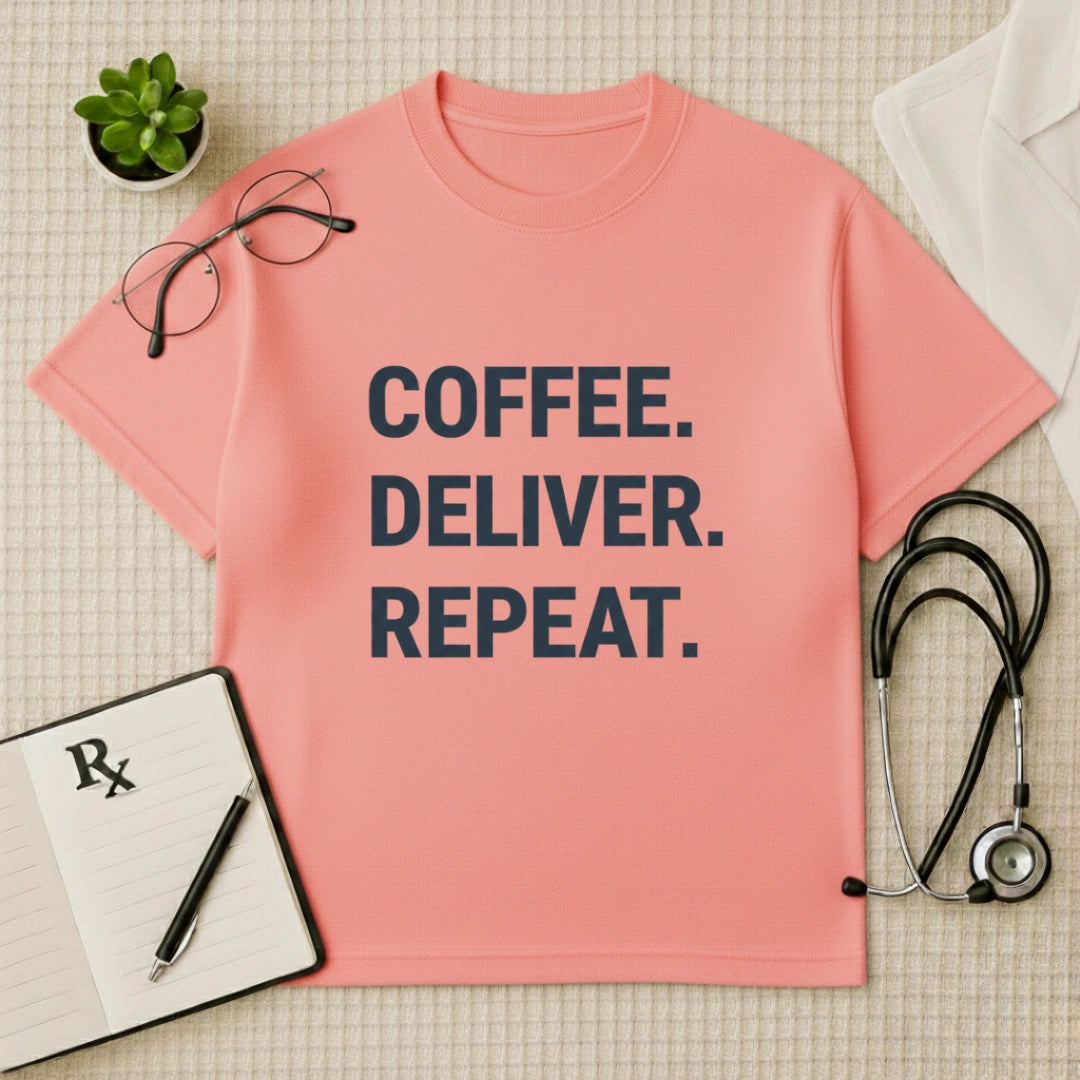Master the rhythm of the labor ward with our Coffee Deliver Repeat Tee. This Gynecologist Oversized Graphic T-Shirt captures the relentless dedication of birth professionals in a bold, minimalist style. As a premium piece of OBGYN Professional Lifestyle Apparel, it offers the perfect oversized silhouette for those long shifts that run on caffeine and the joy of a successful delivery.