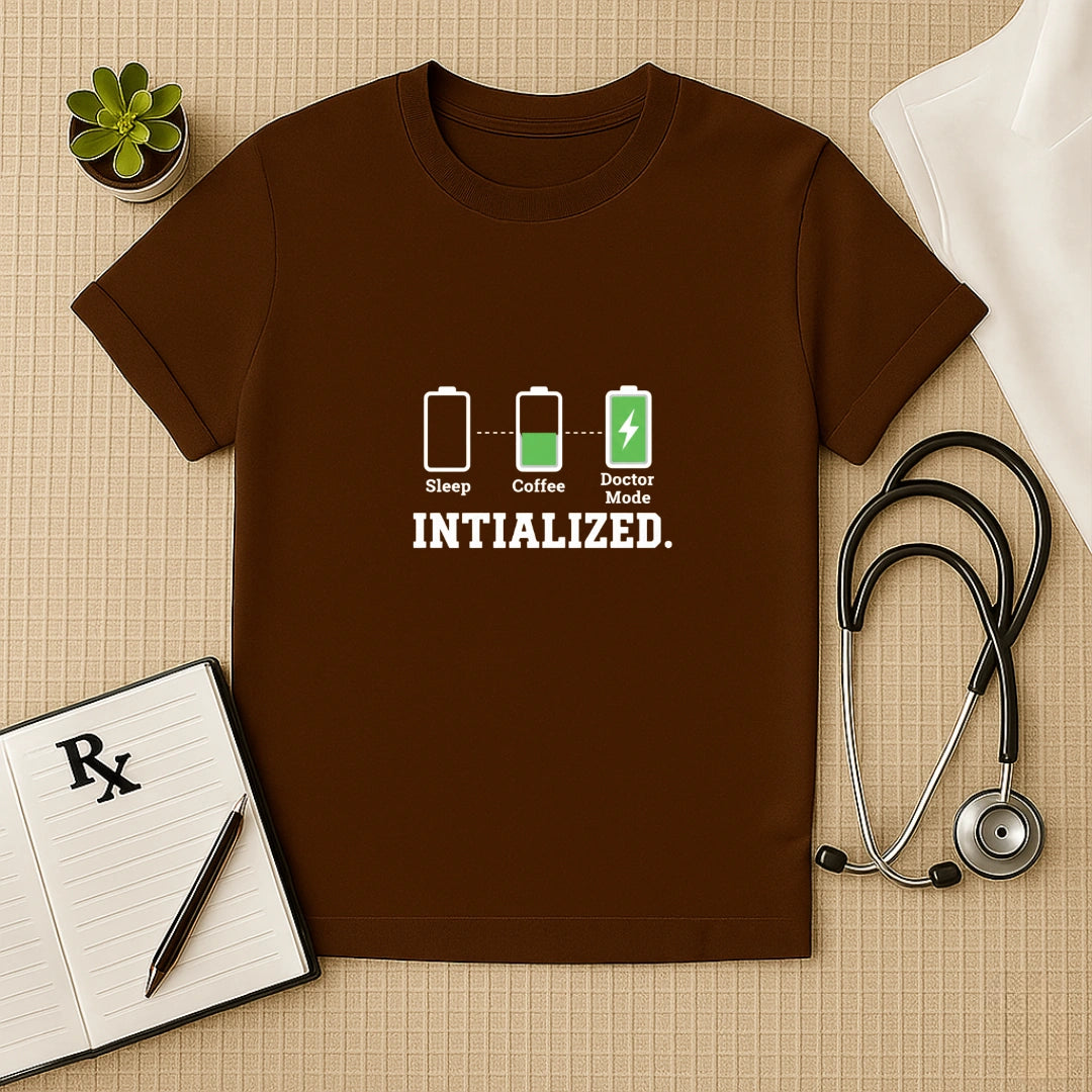 Power up your shift with the Doctor Mode Initialized Tee. This Medical Coffee Graphic T-Shirt features a relatable battery-loading sequence—from zero sleep to full "Doctor Mode." It is the ultimate Healthcare Hustle Apparel for the modern healer who knows that a great day in the clinic starts with a strong brew and a purpose-driven heart.