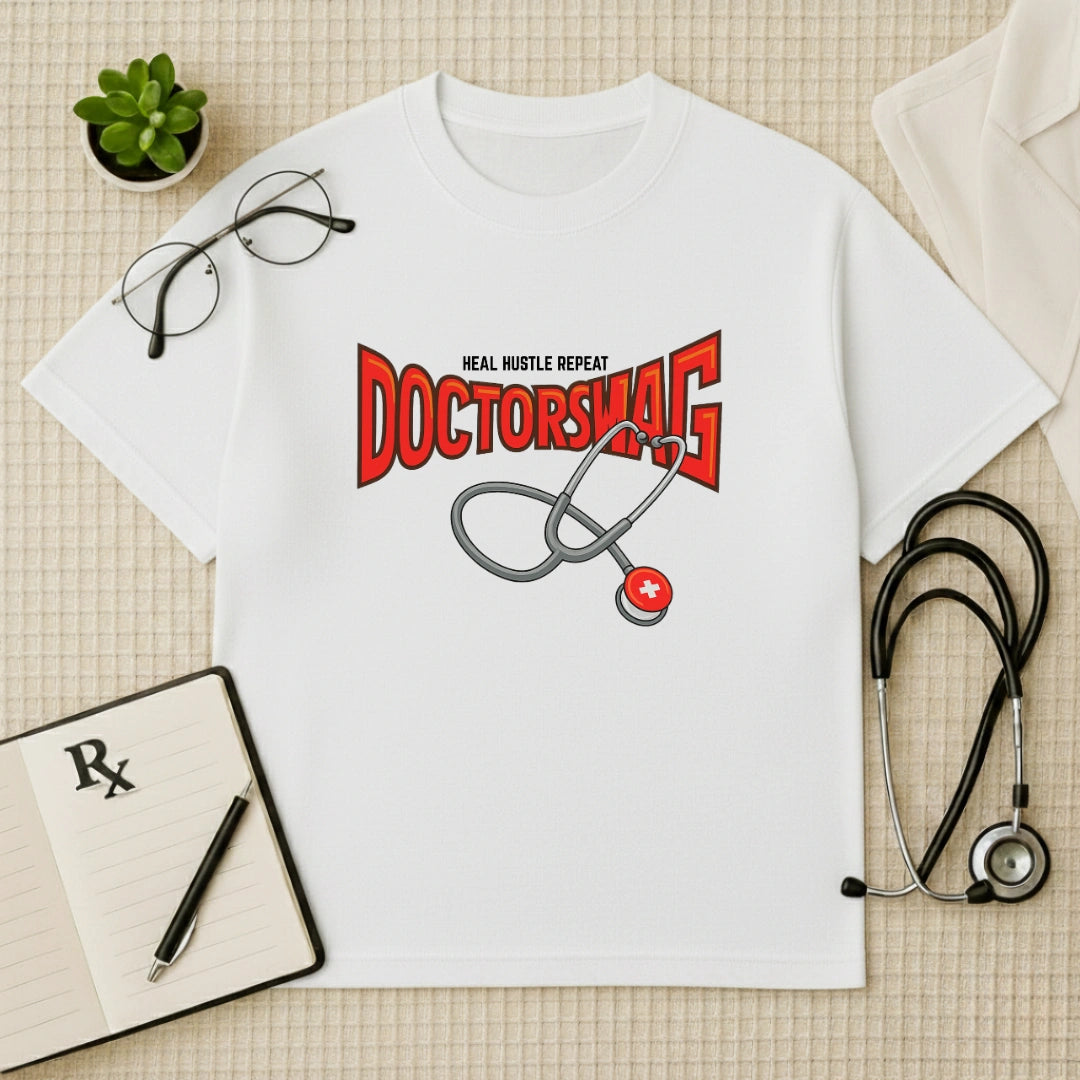 Rep the mission in the original Doctorswag Oversized T-shirt. Featuring our signature "Heal Hustle Repeat" motto, this is the ultimate gear for the modern healthpreneur who leads with a mission heart and a hustler’s grit. This Heal Hustle Repeat tee blends high-performance comfort with a bold, urban look, making it the perfect choice for doctors who are revolutionizing the industry online and off. Step into a piece of unisex medical streetwear that feels like armor and wear your professional calling with pride.
