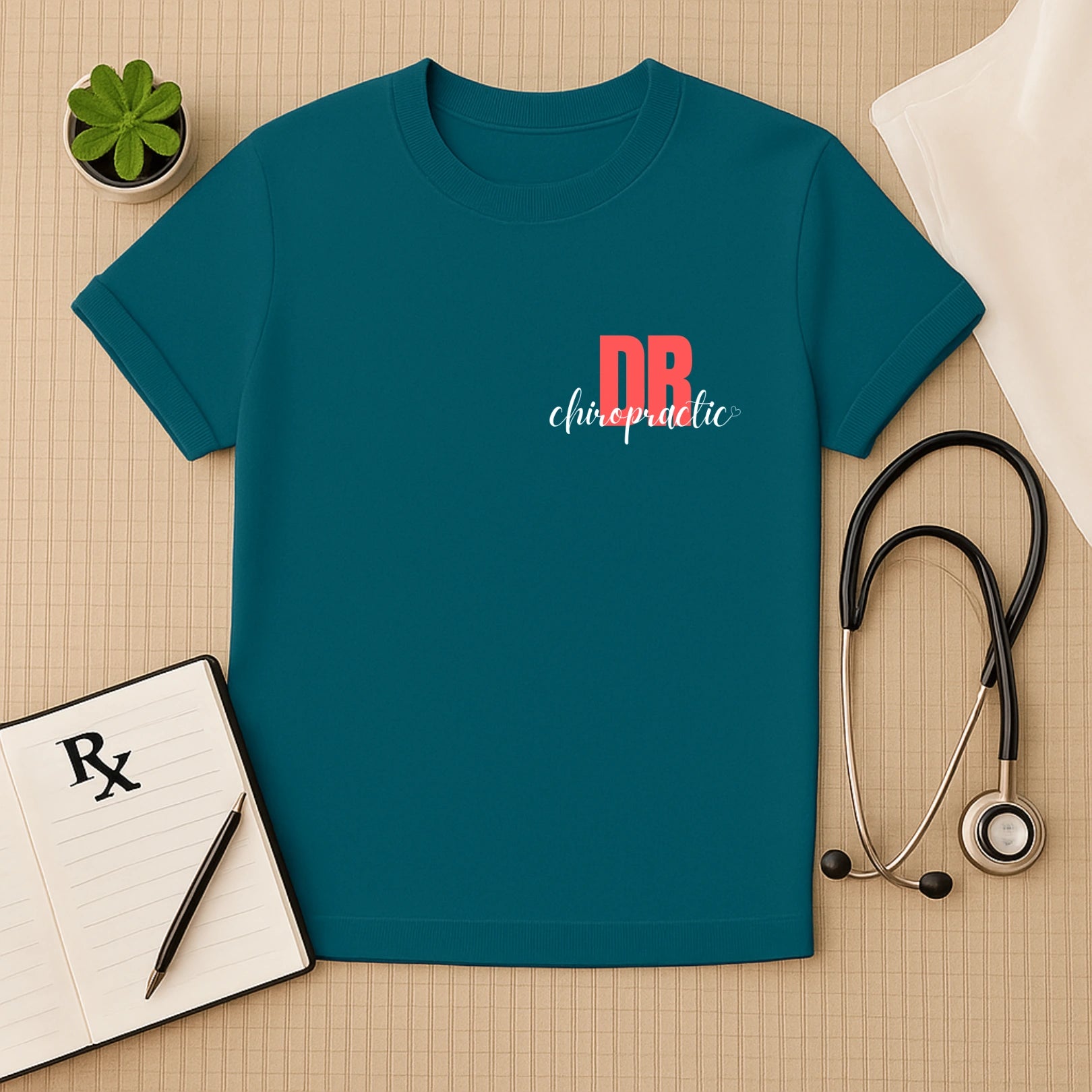 Wear your title and your specialty with pride in our "DR. chiropractic" T-shirt. This design elegantly combines the bold "DR." with a sophisticated script font for "chiropractic," making a powerful and professional statement. It’s a stylish way to represent your expertise and passion for spinal health, perfect for wearing in or out of the clinic.