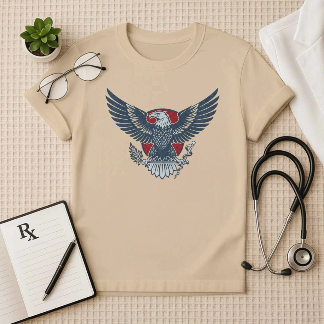 Embody the spirit of a true healthcare leader with our Eagle Caduceus Medical T-Shirt. Designed for the modern doctor who values both precision and power, this Regular Fit Doctor Tee features a striking eagle emblem that commands respect. Whether you are in the clinic or out in the city, this Medical Graphic Tshirt offers a sharp, professional look that doesn't compromise on comfort.
