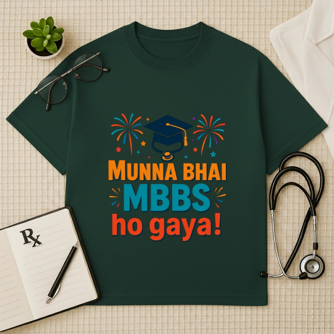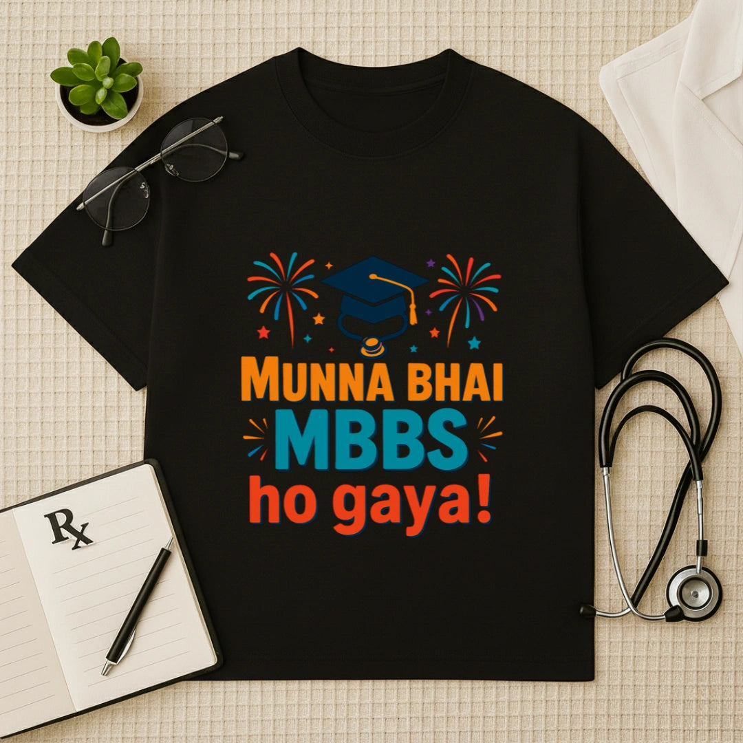 Celebrate the major milestone! This fun, unisex Oversized MBBS T-Shirt features the celebratory phrase: "Munna Bhai MBBS ho gaya!" It’s the perfect gift for a graduating Medical Student or a young Medical Professional ready to start their practice. A bold, celebratory tee to mark the biggest Doctor Graduation achievement!