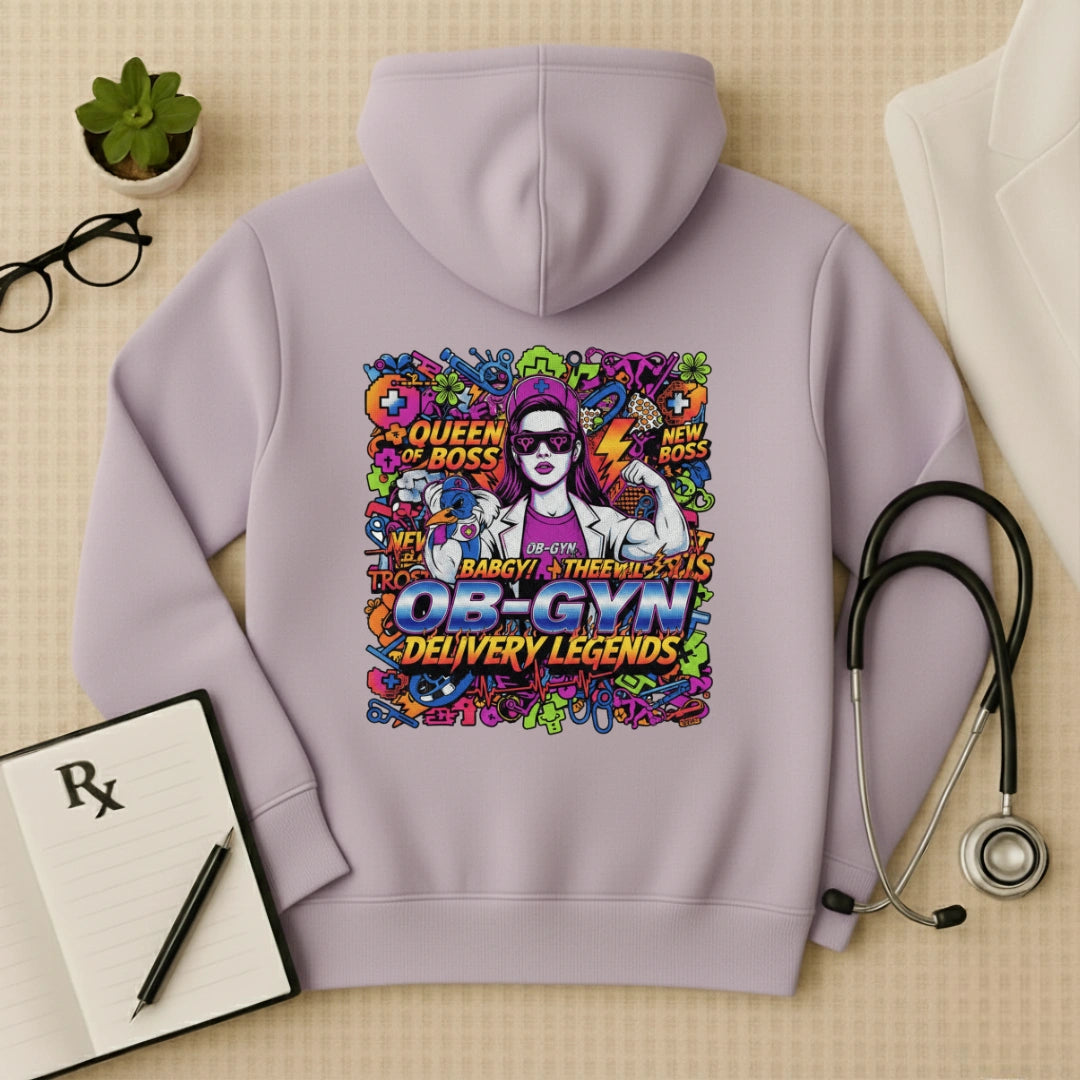 Celebrate the strength of life-bringers with this OB-GYN Oversized Hoodie. Featuring a vibrant, Y2K-inspired "Delivery Legends" back graphic, this Oversized Medical Apparel is built for the "Queen of Boss" doctors who lead with grit and grace. It is the ultimate Premium OB-GYN Graphic Sweatshirt for healers who thrive in the labor room and beyond.