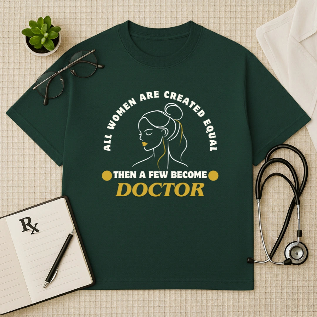 Celebrate the journey of female medical professionals with this exclusive oversized doctor t-shirt. Featuring the bold statement, "All Women Are Created Equal, Then A Few Become Doctor," this tee is the armor of confidence you create at Doctorswag. A powerful, relatable message for every woman in medicine.