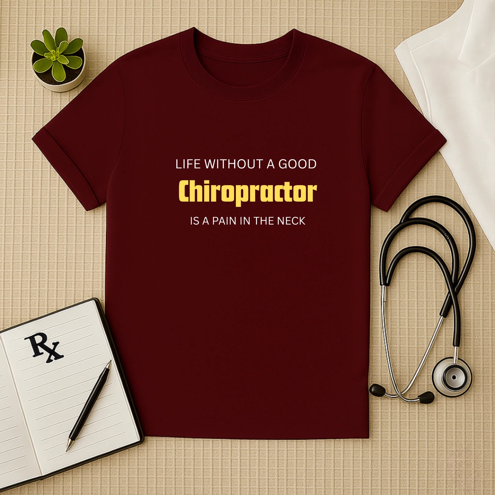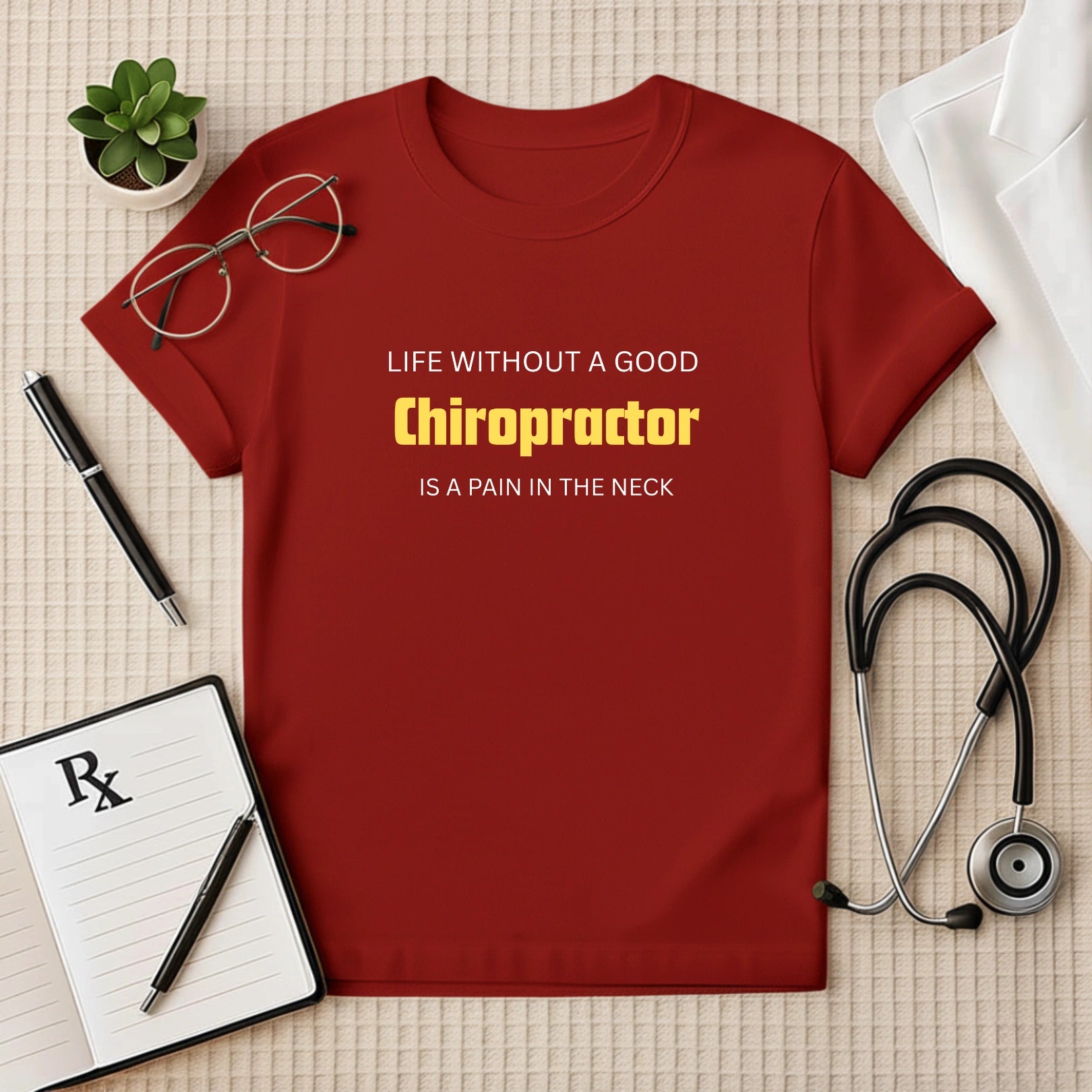 Every chiropractor knows the truth: "LIFE WITHOUT A GOOD Chiropractor IS A PAIN IN THE NECK"! This hilarious Doctor T-shirt perfectly captures the essential role of spinal health experts with a clever pun. More than just a medical T-shirt, it's a witty statement piece for those who bring relief and alignment to countless lives. Comfortable, stylish, and a guaranteed conversation starter, this tee is ideal for chiropractors, chiropractic students, and anyone who appreciates good spinal health humor.