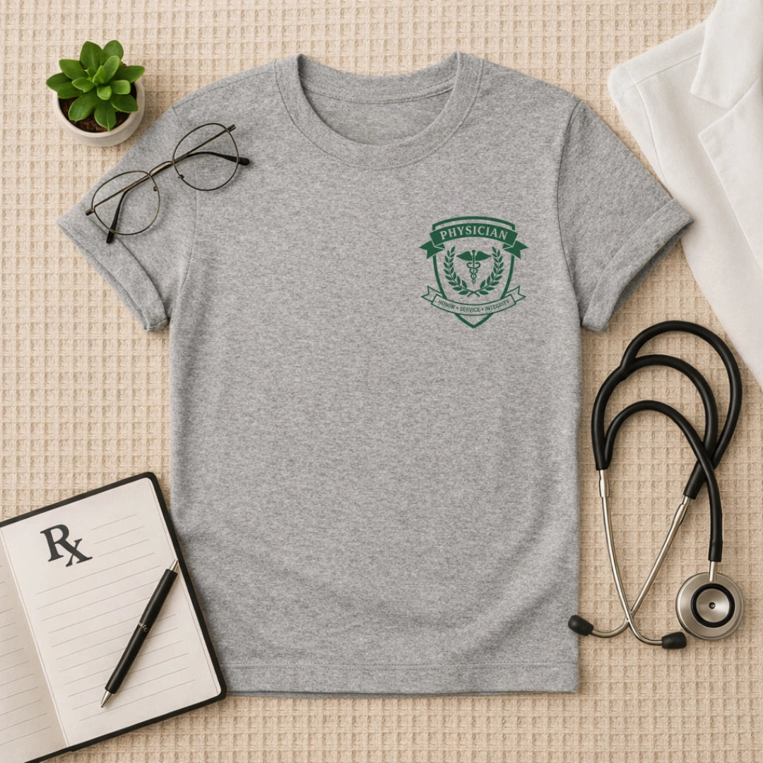 Represent your profession with the Physician Laurel Crest T-Shirt. Featuring a sophisticated green emblem of honor and integrity, this medical lifestyle tee is designed for the modern healer who leads with excellence. Whether you're at the clinic or working on your digital brand, this comfortable staple makes an ideal doctor gift for those who wear their title with pride.
