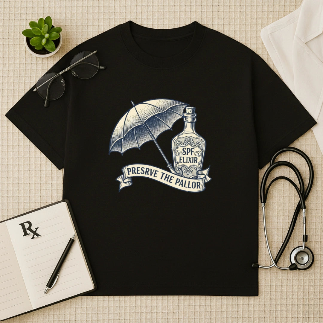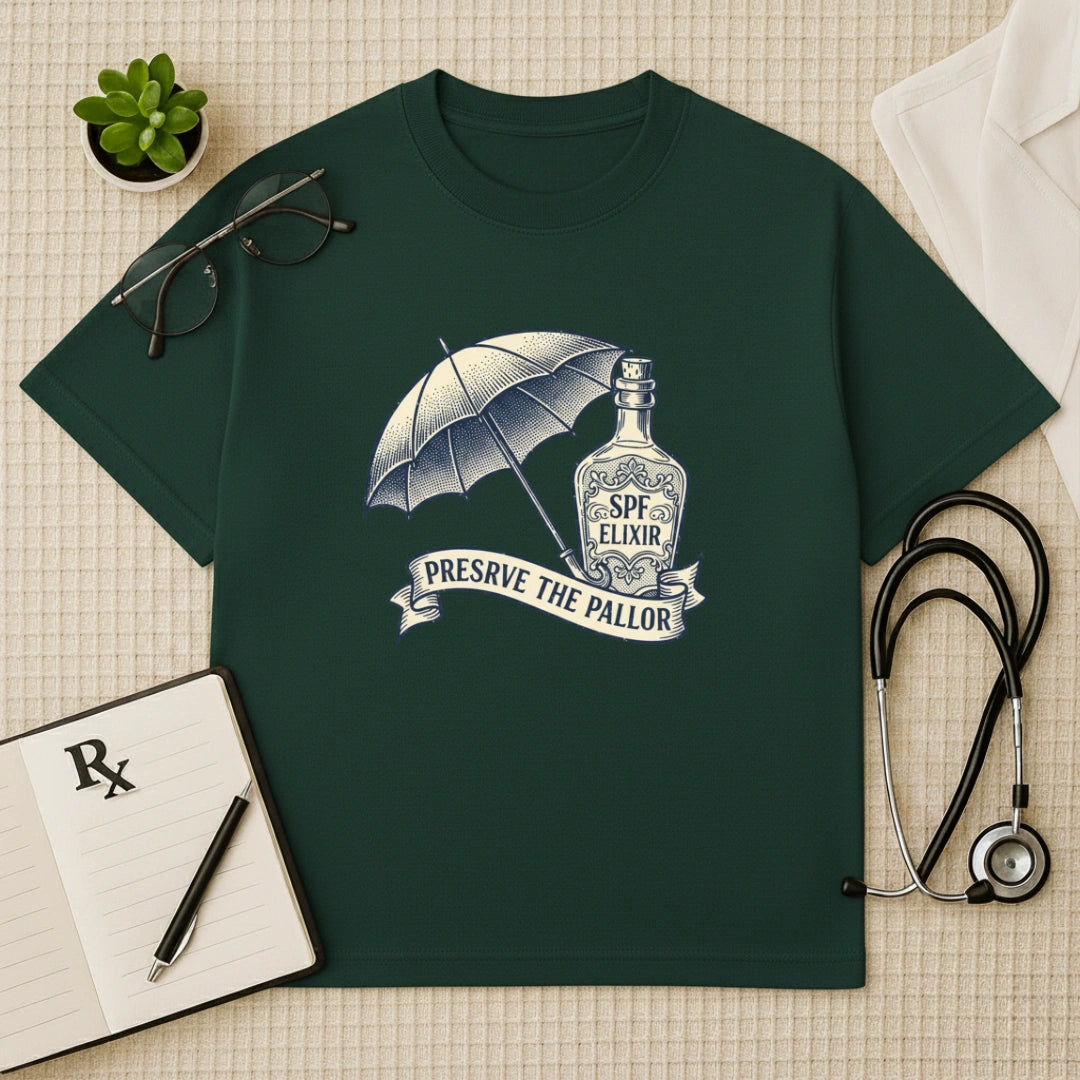 Protect the glow with the SPF Elixir Dermatologist Tee. Featuring a vintage-inspired apothecary bottle and umbrella graphic, this piece turns medical advice into high-end medical aesthetic graphic apparel. This vintage sun protection shirt is more than just a style statement—it’s a script for skin health that every healthpreneur can wear with grit. this SPF elixir dermatologist tee is built to help healers lead the way in preventative care.