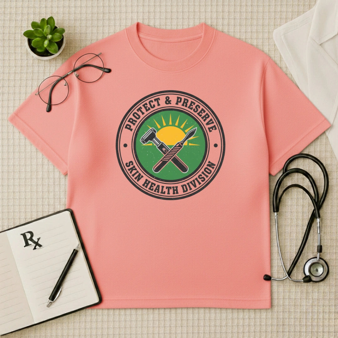 Step into your role as a guardian of dermatology with the Skin Health Division Oversized T-Shirt. This medical tee features a bold, vintage-style seal with a crossed dermatoscope and scalpel, representing the "Protect and Preserve" mission of a true specialist. Designed for the modern dermatologist, this skin health division oversized t-shirt combines clinical authority with a rugged, Y2K-fueled aesthetic, this dermatologist clinical apparel provides the comfort and professional edge needed to help healers thrive.