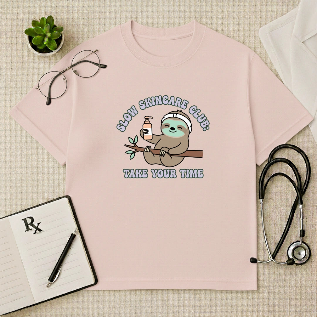 Patience is the ultimate active ingredient with the Slow Skincare Club Sloth Tee. This Oversized Dermatologist T-Shirt features a relaxed sloth taking its time with a routine, reminding everyone that "healing the system" and achieving a glow takes consistency. Crafted for the modern healthpreneur, this Relaxed Skincare Graphic Tshirt blends a playful Y2K aesthetic with premium streetwear comfort.