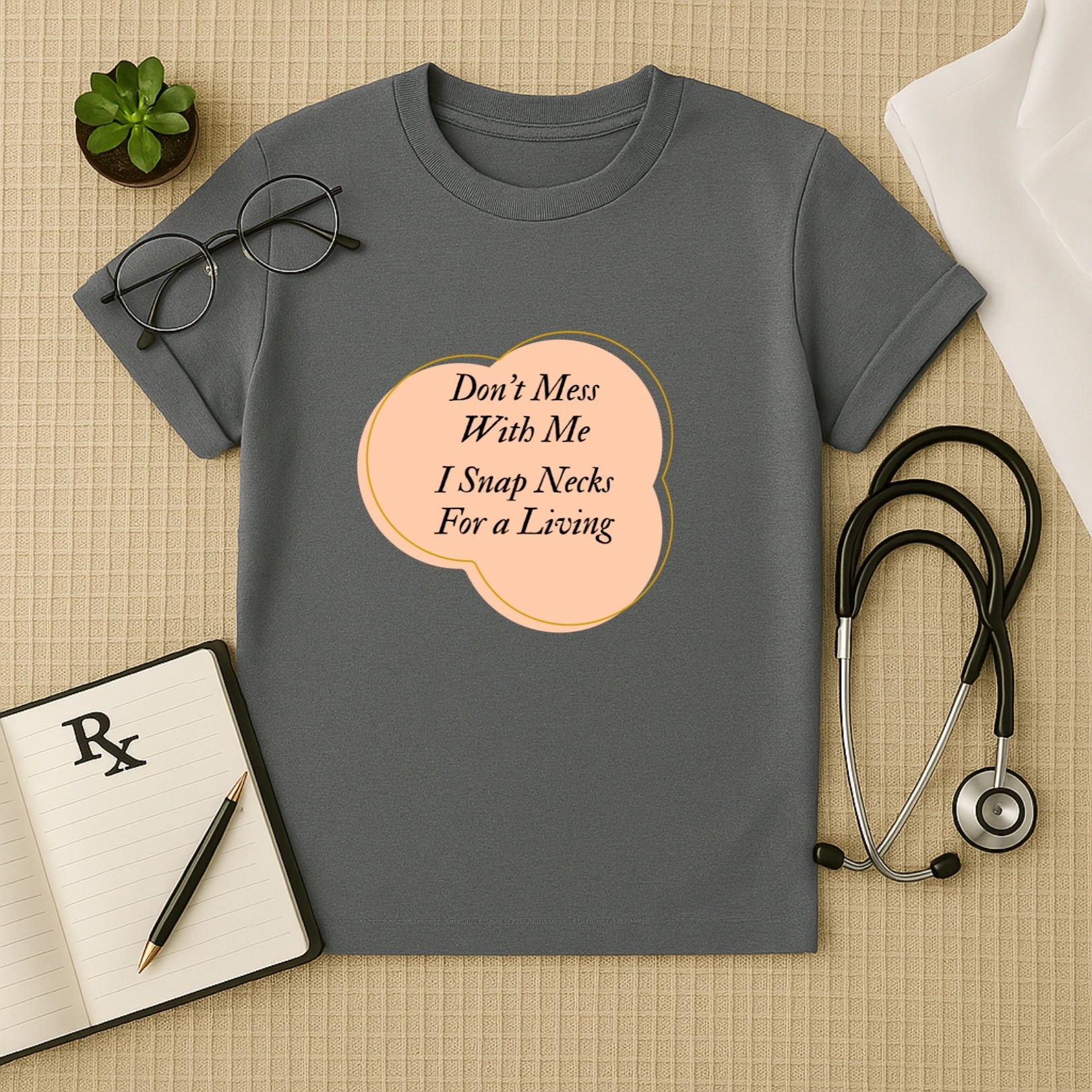 For the chiropractor who isn't afraid to be a little bit cheeky. This "Don't Mess With Me I Snap Necks For a Living" T-shirt is a hilarious and witty take on your everyday professional life. It's a comfortable conversation starter that celebrates your unique skills with a sense of humor. Perfect for clinic wear or showing off your professional swagger.